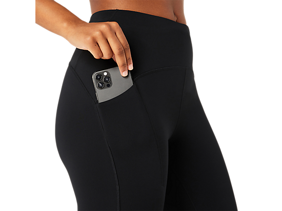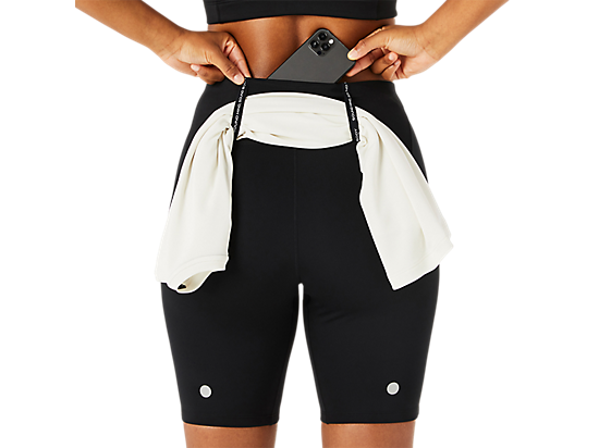 This sprinter features a convenient phone pocket at the back and an additional phone or gel side thigh pocket that is bounce-limiting. Additionally, there is an elasticated loop storage system for a jacket, tee, towel, or any running essential.